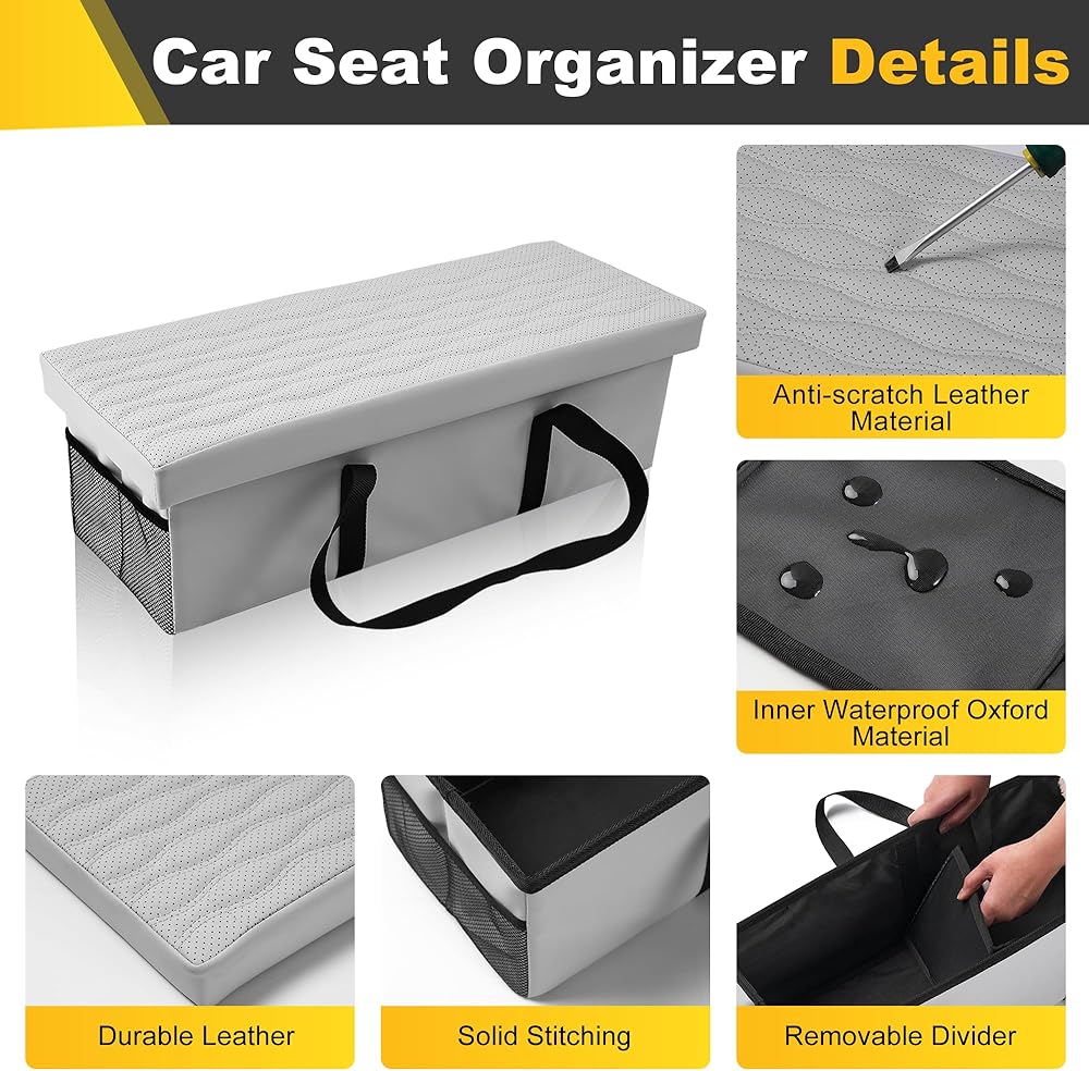 Car Seat Organizer Compatible with 2020-2024 2025 2026 Kia Telluride - Grey Backseat Box Console Organizer for Kia Telluride, Kids Toys Baby Supplies Dog Toys Snack Storage Bin Travel Accessories