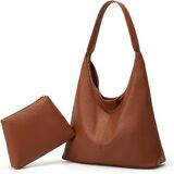 Vegan Leather Material: The brown leather tote bags for women are made of premium faux leather material, with polyester lining, wear-resistant, lightweight, soft and comfortable, a practical leather handbag