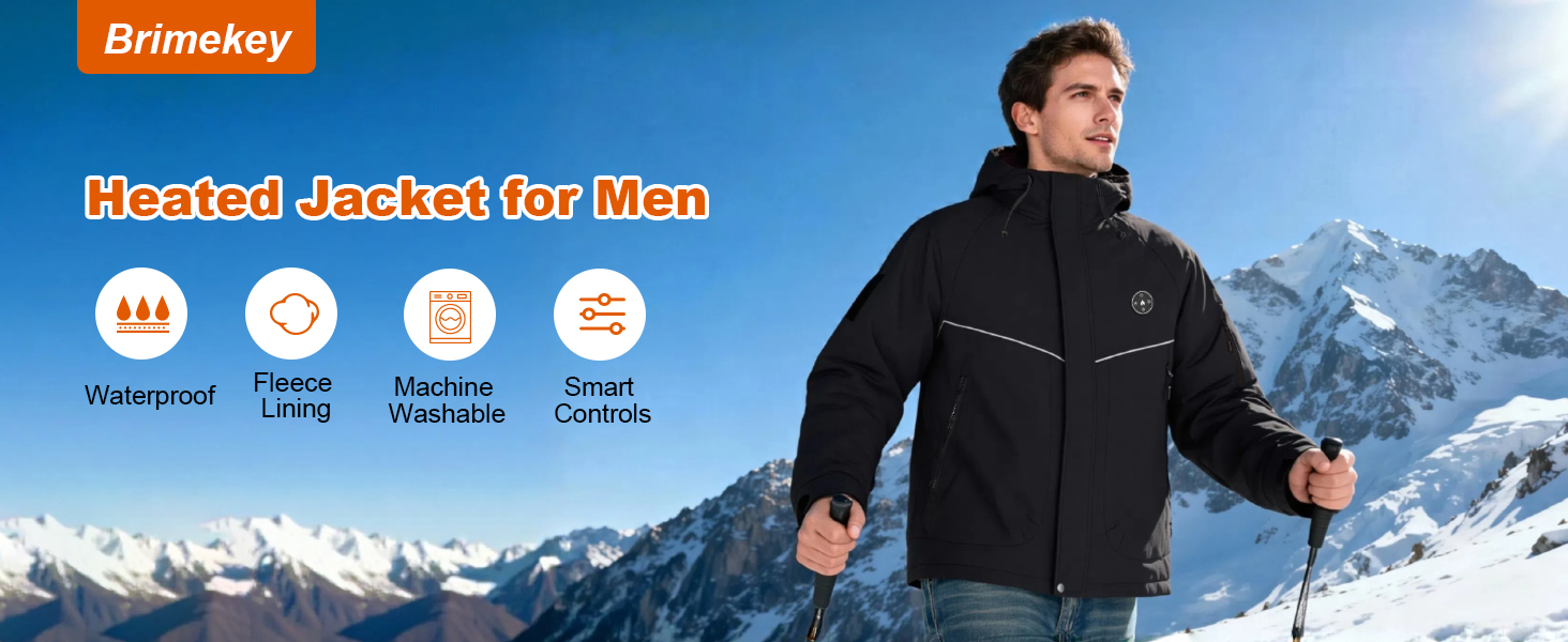 【Waterproof & Windproof & Scrape-proof】Brimekey men's heated jacket is crafted from high-quality softshell fabric, offering a soft and comfortable feel along with excellent waterproofing and insulation properties. The heated coats also exhibit strong stretch capabilities and abrasion resistance, making them suitable for various occasions, including winter wear, outdoor camping, hiking, fishing, skiing, mountaineering, picnics, and everyday wear.