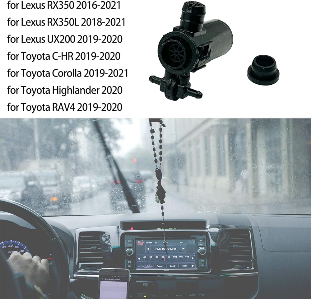 Model Fitment: Washer Pump for Lexus RX350 2016-2021, for Lexus RX350L 2018-2021, for Lexus UX200 2019-2020,for Toyota C-HR 2019-2020, for Toyota Corolla 2019-2021, for Toyota Highlander 2020, for Toyota RAV4 2019-2020
