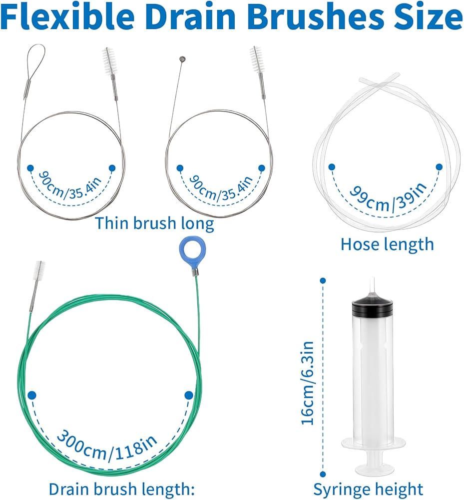 Package Includes:Includes 1 piece 118-inch sunroof drain brush, 2 pieces 35.4inch detail cleaning brushes, 1 syringe, and 1 syringe hose,specially designed for cleaning hard-to-reach narrow pipes, such as those in your car sunroof drain and auto sunroof drain cleaner systems, fully meeting your daily usage needs.