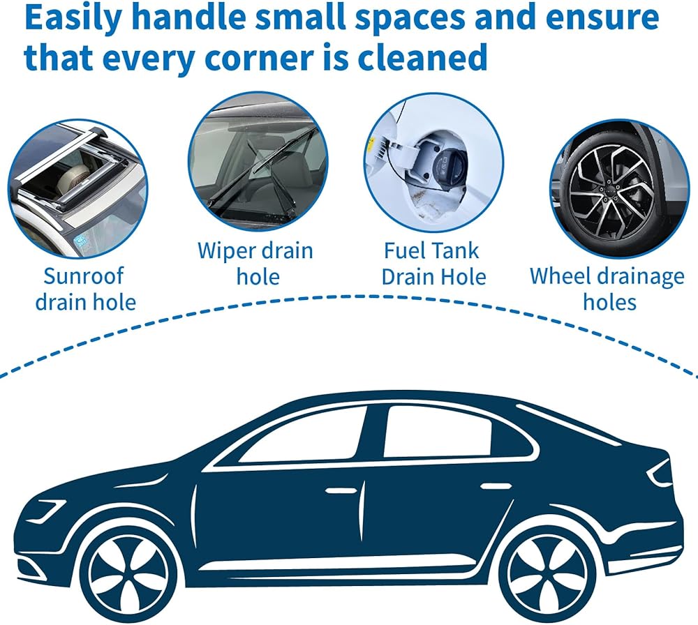 Soft, Scratch-Resistant Bristles:The scrub brush features rotating nylon bristles that are soft and scratch-resistant. These bristles effectively remove dirt, leaves, and other debris from sunroof drain systems without harming your car's paint or other sensitive surfaces, ensuring a safe and gentle cleaning process.