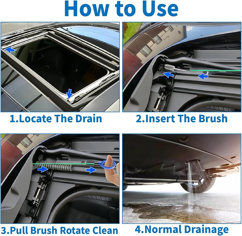 Practical Hand Loop Design:The cleaning brush comes with a practical hand loop at one end, making it easy to handle and preventing the brush from getting stuck in narrow pipes, including sunroof drain unclogger areas. The syringe and hose help drain efficiently, giving you a clean and functional auto sunroof drain cleaner system.