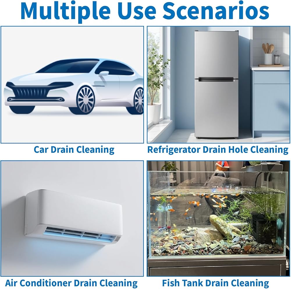 Wide Application:This flexible drain cleaning brush is perfect for cleaning car sunroof drain cleaning tool, auto wipers, fuel tank drain holes, door drain holes, and skylight drain pipes. It is also ideal for home cleaning, including refrigerator drains, fish tanks, hoses, and more, providing a versatile solution for both automotive and household use.