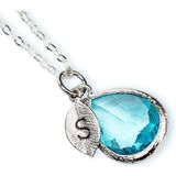 Personalized Aquamarine Necklace, Bridesmaid Necklace, March Birthstone Necklace, Custom Initial Necklace, Gift for Her, Aquamarine Jewelry