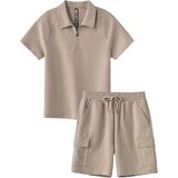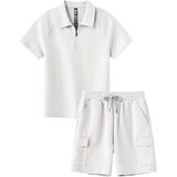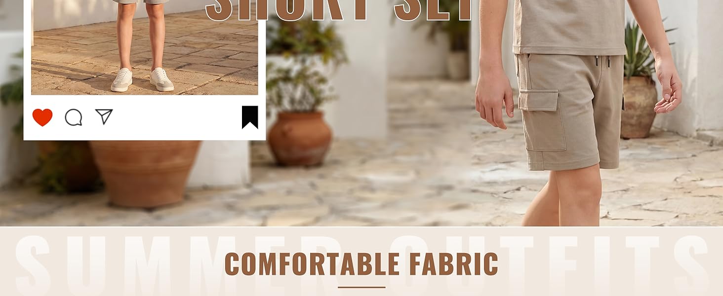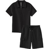 Design: Boys Summer Casual Outfits feature a zipper lapel neck T-shirt:It is convenient for quick heat dissipation or ventilation, avoiding stuffiness after sweating during exercise;and elastic and drawstring waist cargo shorts with 2 side pockets and 2 cargo pockets,make it convenient to store important items.