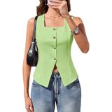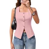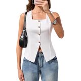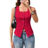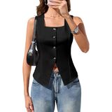 Designs: The vest tops for women has adjustable back belt,which can accentuate the curves of the body. The square neck and buttons front design adds a modern touch to this womens fashion vests, making it a must-have for any fashion-forward woman