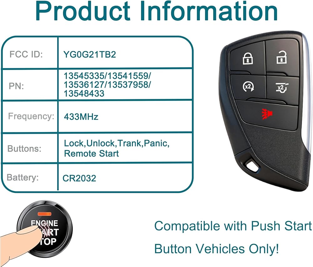 Smart Key Fob for Chevrolet Suburban 2021-2025 FengRKey Proximity Remote Control Key Fob Compatible with Chevy Suburban Tahoe 2021-2025 YGOG21TB2 13545335