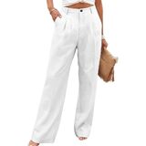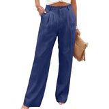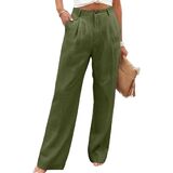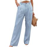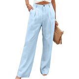 Women's Linen Palazzo Pants High Waisted Button Up Wide Leg Casual Long Lounge Trousers with Pockets in Kuwait