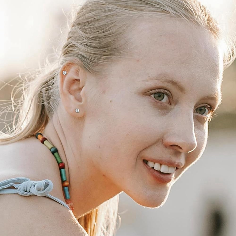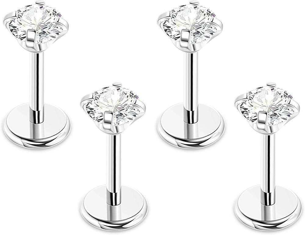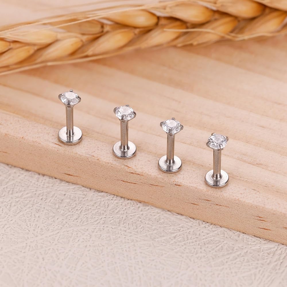 Package Include: This threaded stud earrings set including 2 pairs of cubic zirconia stud earrings. It has multiple uses and can be used as tragus earrings, cartilage earrings stud, helix earrings stud, conch piercing, and more.
