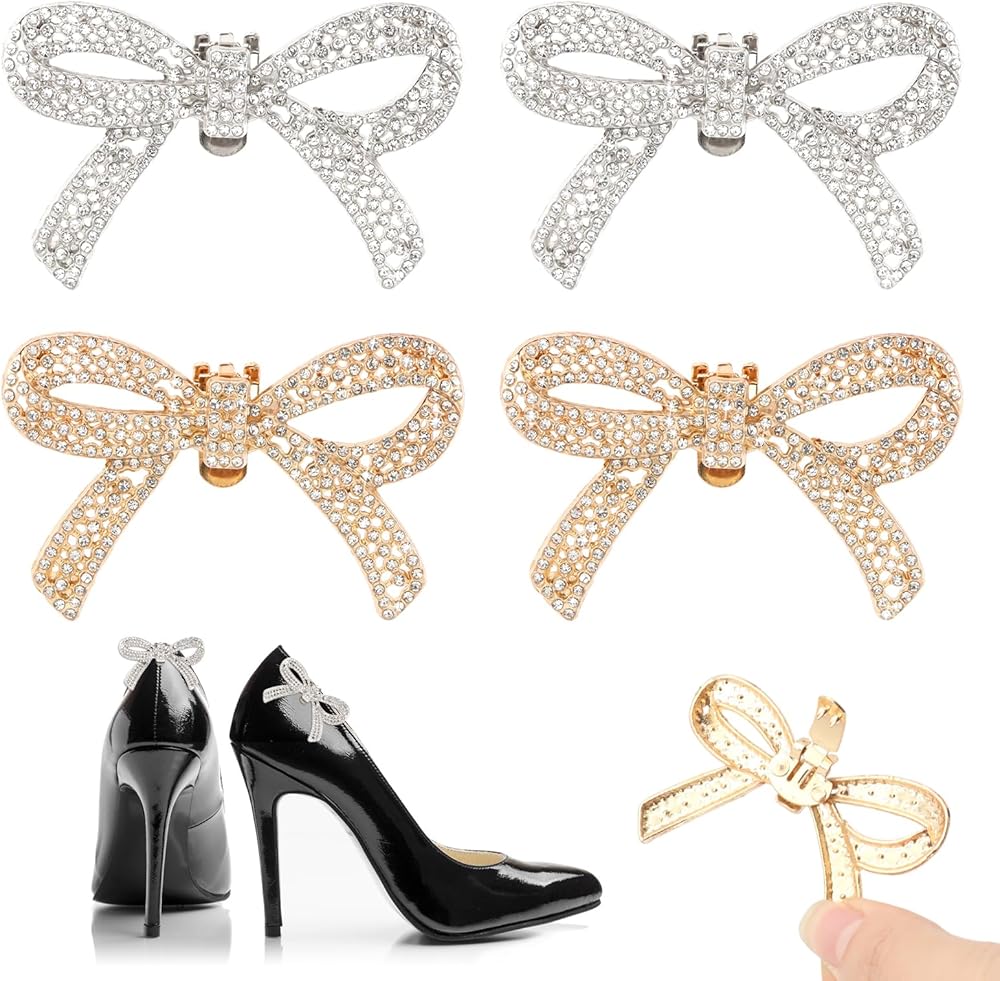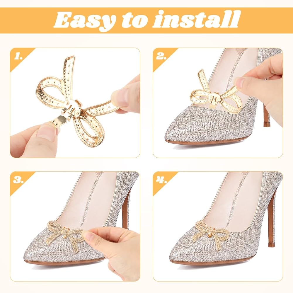【SHOE CLIPS】You will get 4pcs bow shoe clips, 2 colors design( gold, silver, each 2pcs). The product size of the clips for shoes is about61x39mm/2.4x1.54inch (WxL). These high heels accessories transform standard footwear into a statement piece suitable for any significant occasion.