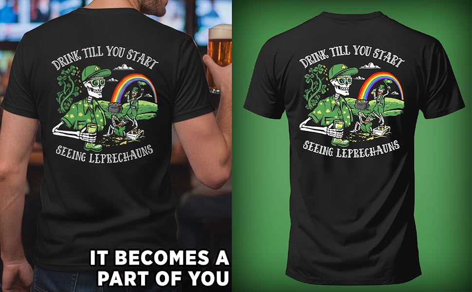 Instant St. Patrick's Day Mode – Celebration-ready tee featuring a bold skeleton leprechaun graphic with playful Irish attitude and eye-catching detail. Perfect for St. Patrick's Day festivities, parties, or showing off your fun-loving, live-life-salty spirit wherever the celebration takes you.