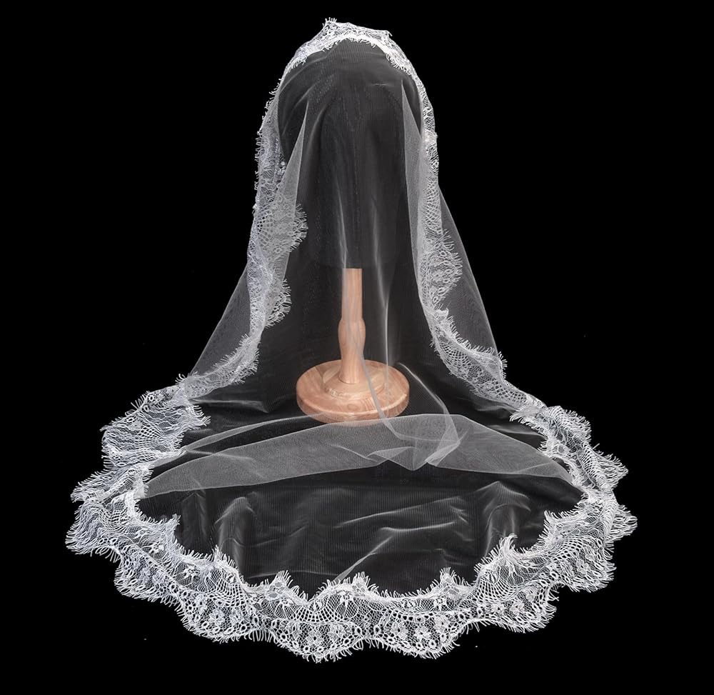 DELICATE LACE DETAILING: Features soft, intricate lace edging with floral motifs that frame the face beautifully and complement traditional communion dresses