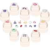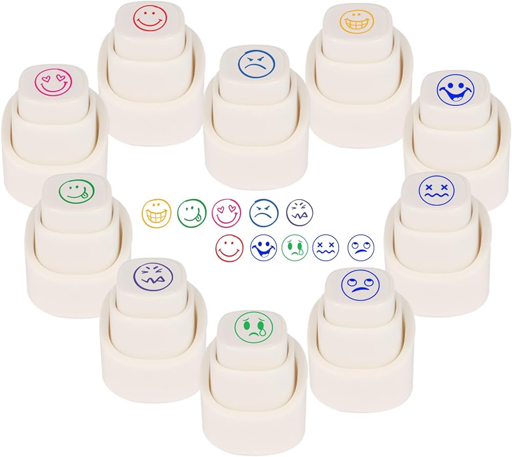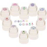 10 Pcs Weather Stamps Set with Self-Reinking. Our unique button-type stamps press to use, release to retract! Package includes 10 assorted weather faces: Sunny, Thunderstorm, Lightning, High/Low Temperature, Umbrella, Snowflake, Cloudy, etc. They re-ink automatically for thousands of crisp impressions.