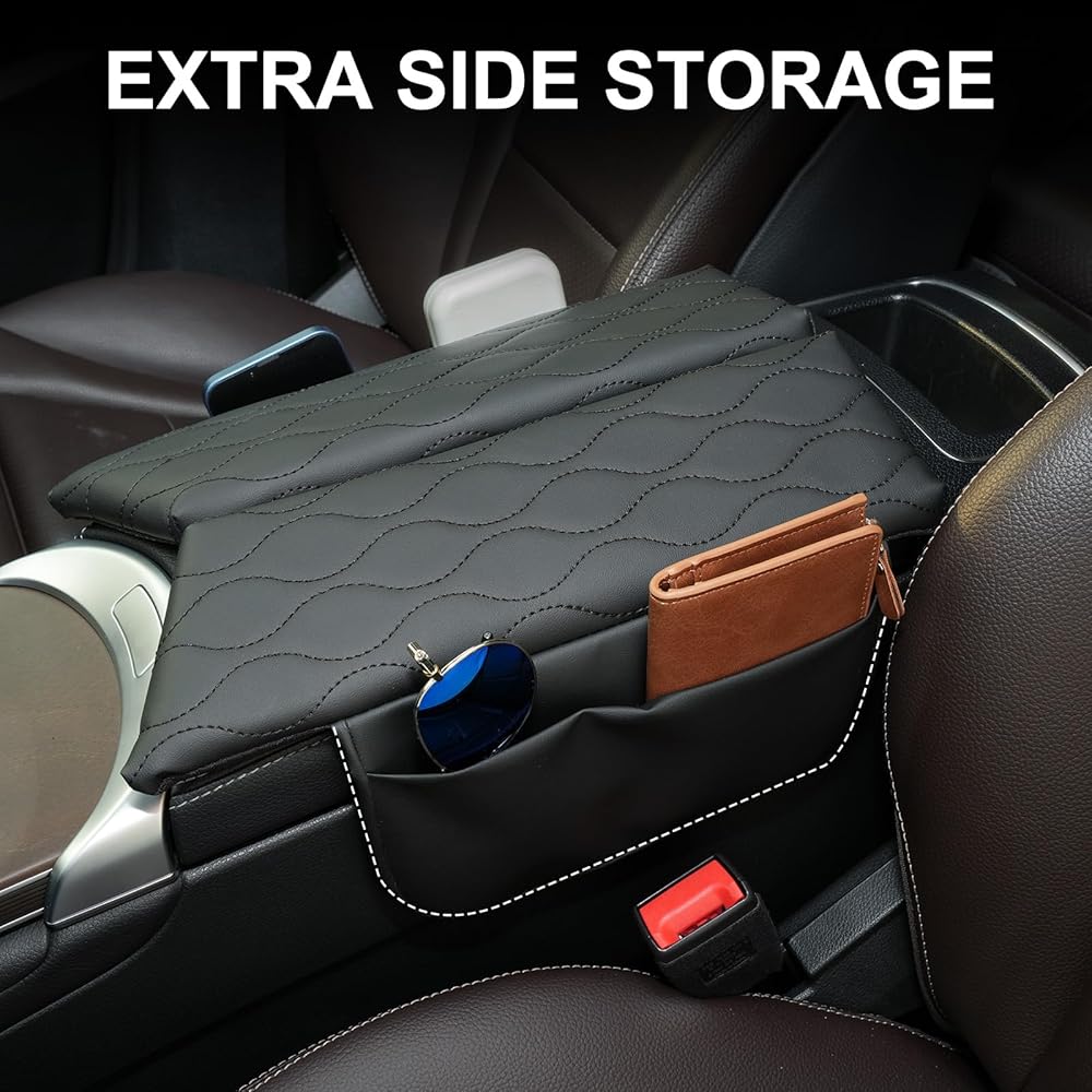 【Extra Side Storage】Upgraded with integrated leather side pockets. Perfect for organizing your phone, keys, and cards, keeping your center console neat and clutter-free.