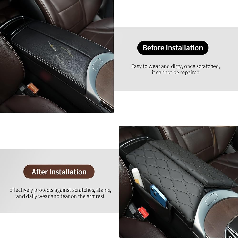 【Easy Installation】Features a wide hook-and-loop fastening system. Simply wrap the side panels and press together for a secure fit without affecting the armrest lid's operation.