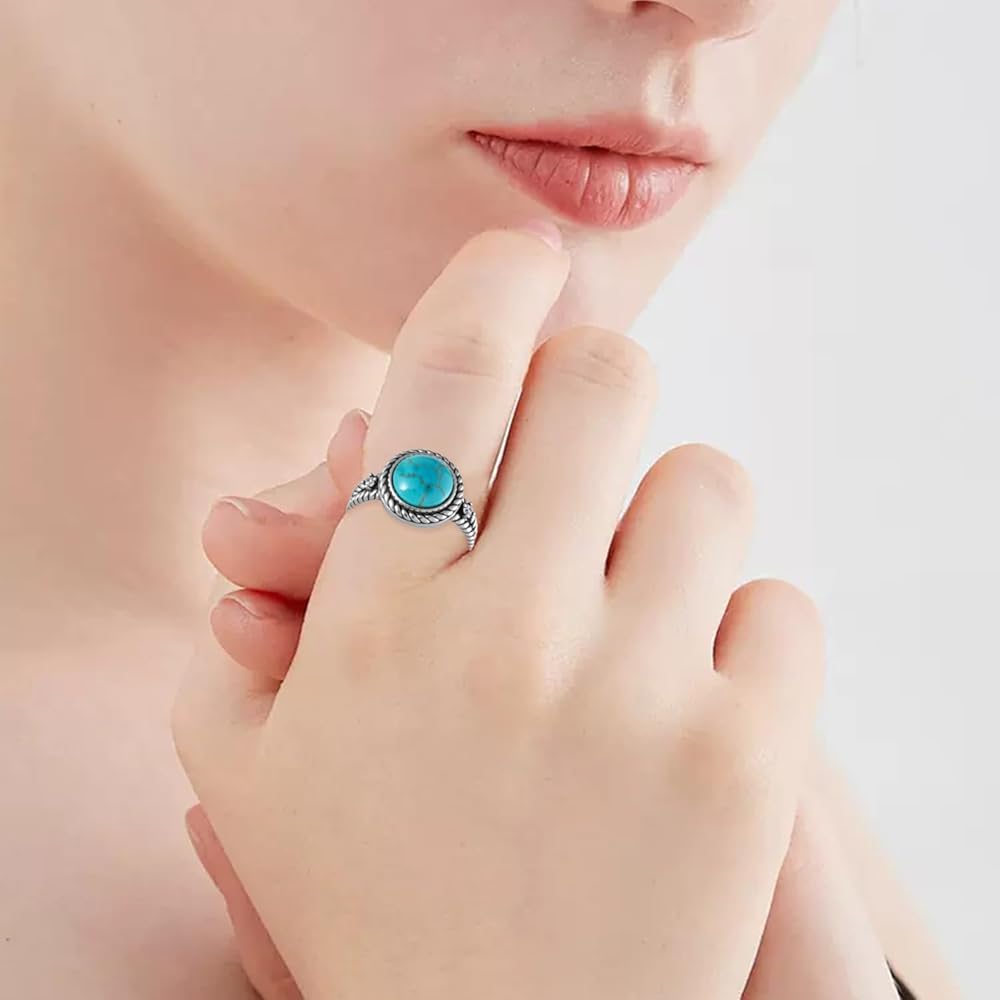 - Genuine Turquoise Rings 925 Sterling Silver Western Boho Style Rings Vintage Natural Gemstone Real Turquoise Jewelry Gifts for Women