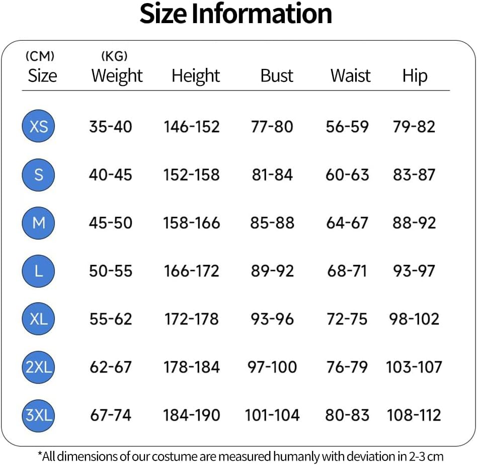 Size: The Genshin Flins cosplay costume is available in 7 sizes, ranging from XS to 3XL. The clothing uses Asian sizing; please check the relevant measurements to select the most suitable size.