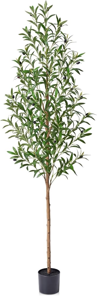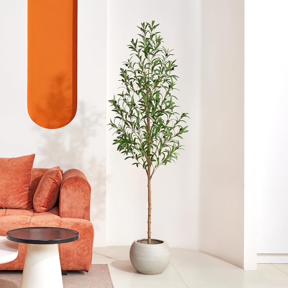 Real Wood Trunk for Authentic Detail – Unlike ordinary plastic trees, this 6FT artificial olive tree indoor features a genuine natural wood trunk and lifelike olive fruits, delivering a premium Mediterranean look that instantly elevates your home decor living room or stylish office decor.