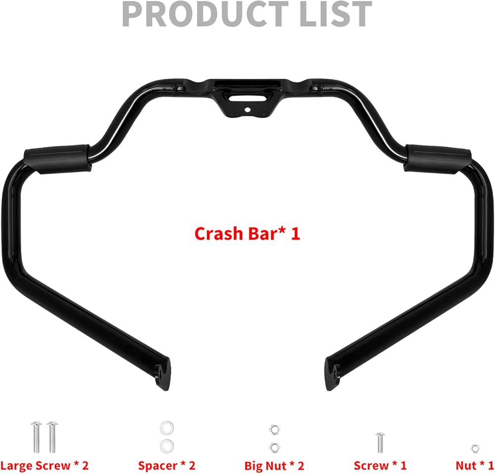 This engine guard crash bar is designed to Compatible with Harley Fat Boy Street Bob Heritage Classic Low Rider Sport Glide Deluxe Slim 2018-2024.The engine guard seamlessly integrates with your Harley, offering essential protection and enhanced stability for both long-distance rides and daily use.
