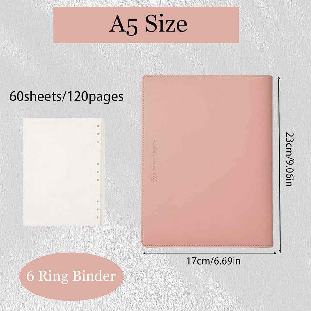 Package includes: This set includes a 6 ring A5 loose leaf notebook binder with a sleek soft PU leather cover, 60 sheets of high-quality 100gsm blank Dowling paper. Perfect for organizing your notes, sketches, and documents in style.