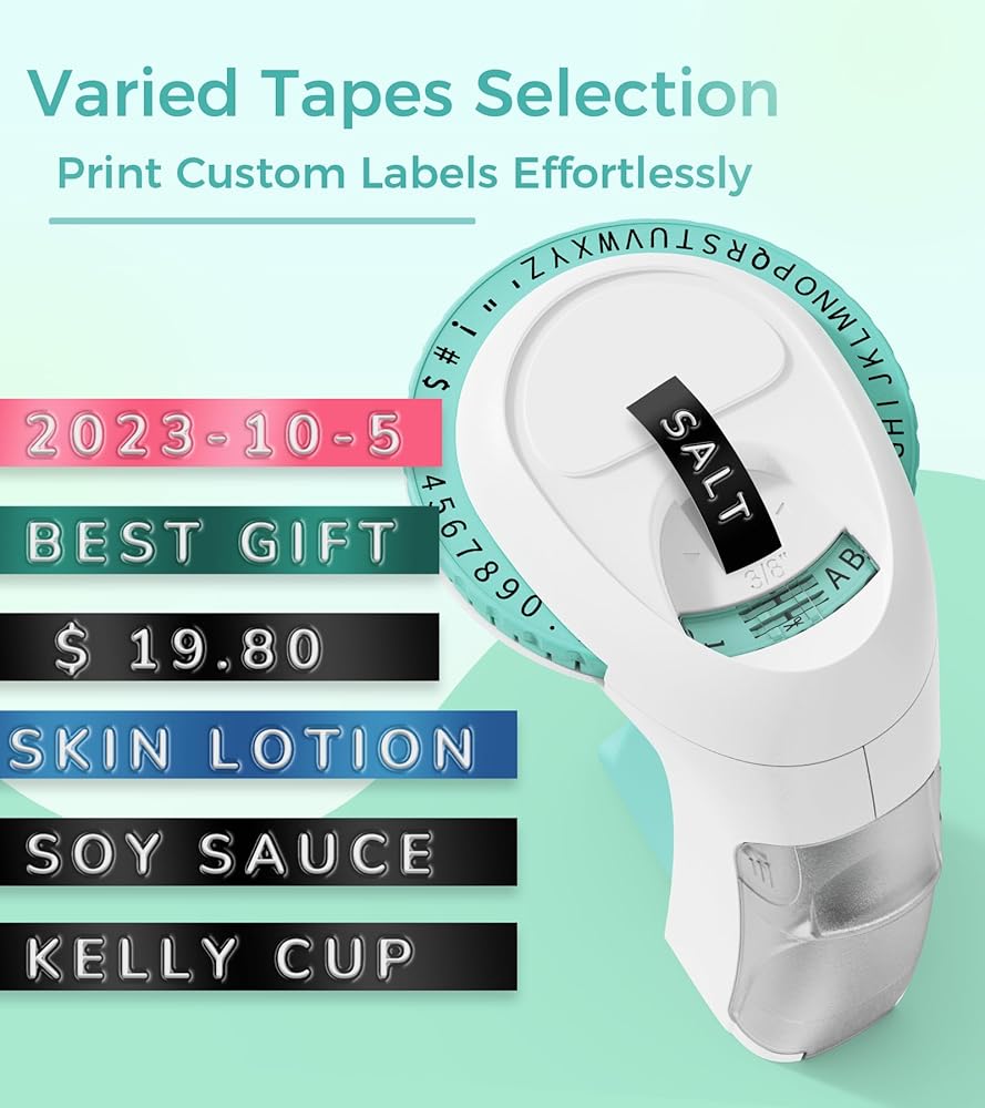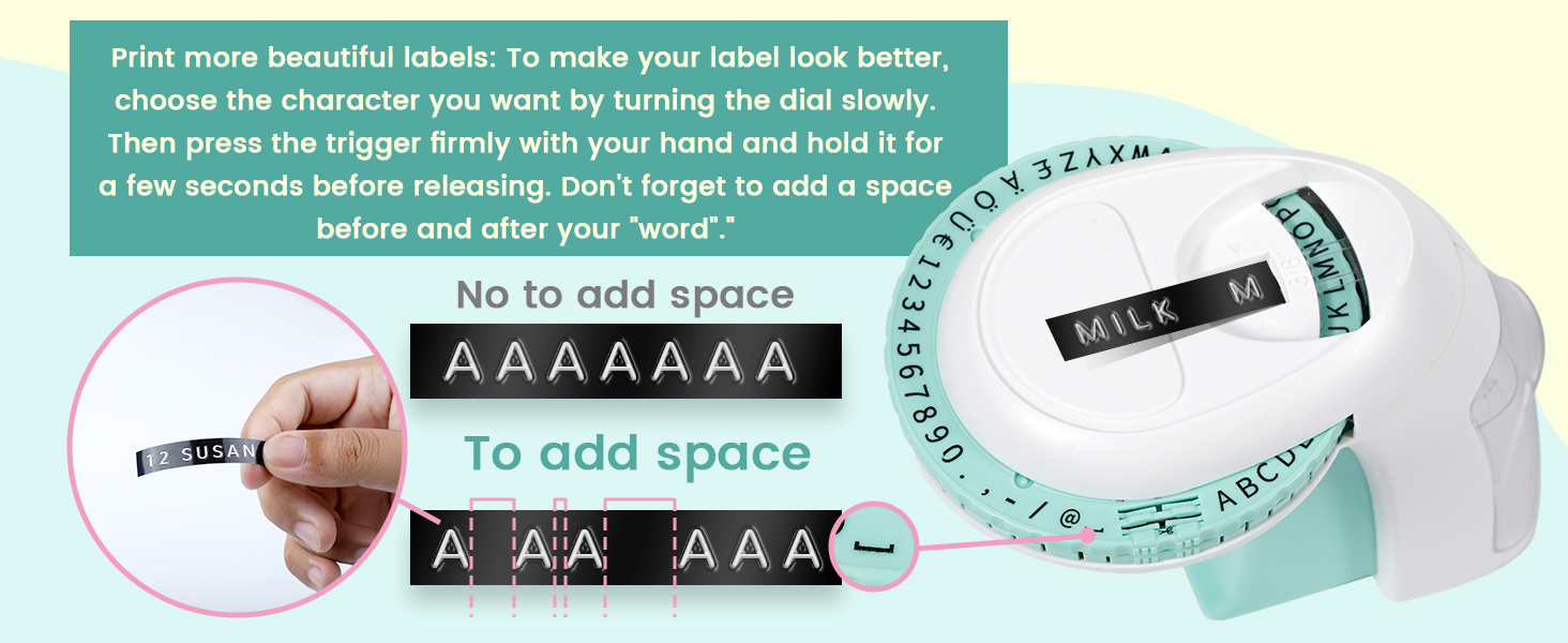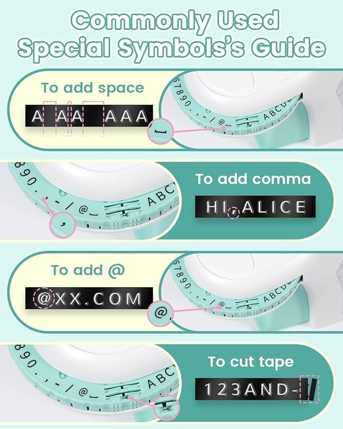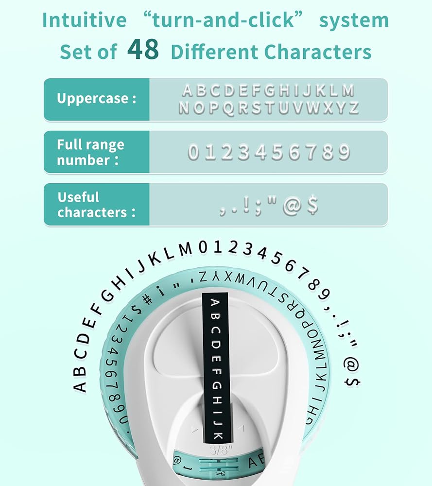 Convenience Portable Label Maker Embossing Dials -Our embosser label printer's dial is designed with useful 48 characters wheel,Prints letters, numbers and daily symbols