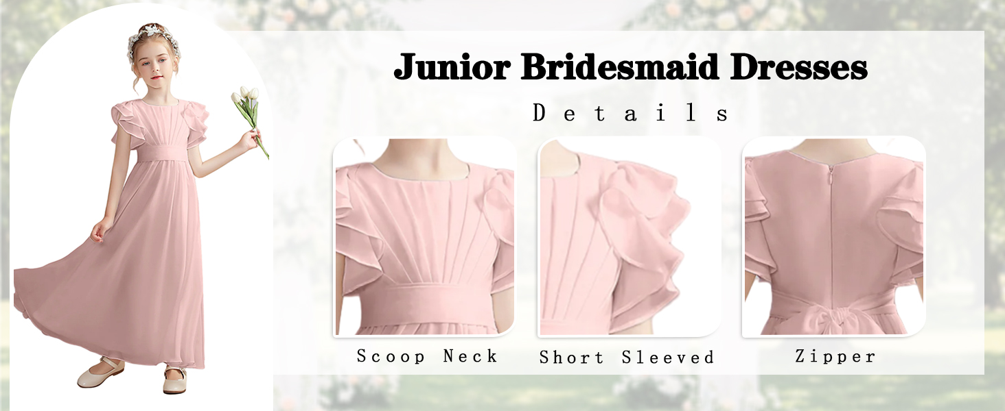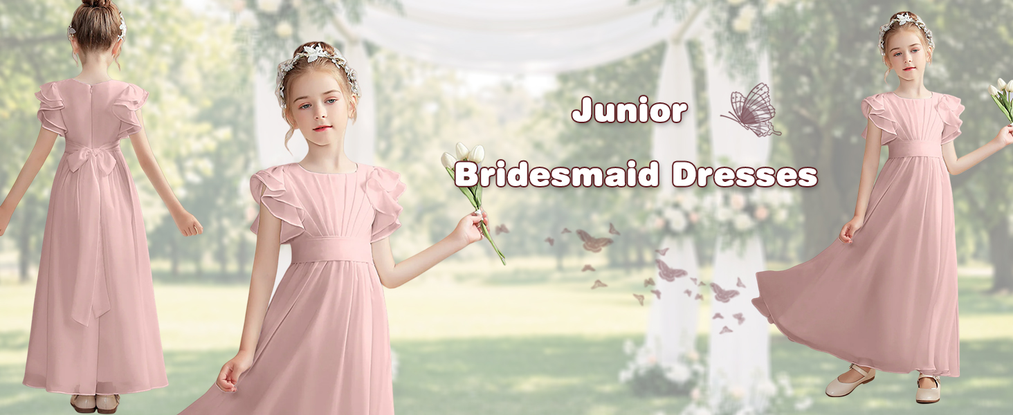 Elegant Chiffon Fabric: Our junior bridesmaid dresses are crafted from high-quality chiffon, providing a luxurious and sophisticated look. The lightweight and flowing material creates a beautiful drape, ensuring your young ones feel comfortable and princess-like throughout any event.
