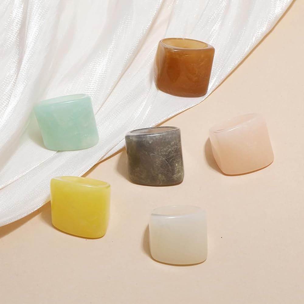 Y2K Throwback Ring Stack: These chunky resin rings are giving major early 2000s nostalgia! The colorful geometric shapes come in 6-piece sets so you can mix and match to your heart's content. Each square acrylic ring has that great retro-futuristic vibe that's totally trending again. Go bold with all the colors or keep it simple with just a few - either way you're winning the accessory game
