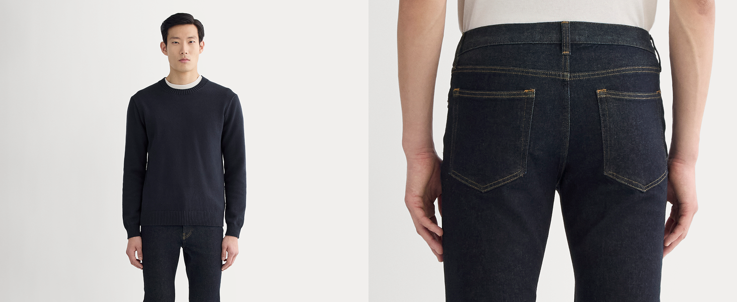 Easy and slim—but not skinny. The Slim-Fit Jean is made of premium, midweight denim that feels substantial but has a touch of stretch for comfort. It's made of our cleanest denim fabric yet.* *This jean is made of organic cotton and Roica® V550 yarn—i.e., the first stretch yarn worldwide that isn't made with harmful chemicals and that has achieved a Gold Material Health Certificate from Cradle-to-Cradle™ Product Innovation Institute, as well as Hohenstein Environment Compatibility Certification. This innovative material, along with the use of safer dyes and recycled trim, has allowed us to be one of the first companies to make stretch denim that is cleaner for the planet.
