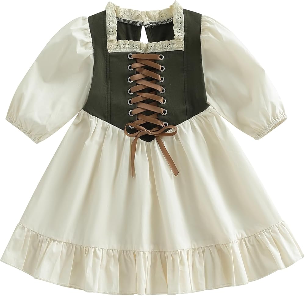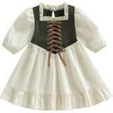Toddler Little Girl Floral Dress with Apron Lace Trim Short Puff Sleeve A-line Princess Dresses for Daily Party Stage