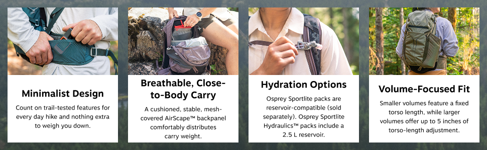 FOCUSED FEATURES: Spacious main compartment, organization compartment, dual hipbelt pockets, stretch side pockets, a front shove-it pocket, small front pocket, trekking pole loops and an internal hydration sleeve. (Reservoir sold separately.)