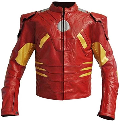 Men's Iron man Real Leather Motorbike Jacket is made of high quality leather. Great jacket for bikers.An amazing slim fit jacket for bikers who are Iron man fans.Top quality workmanship.Original YKK Zipper.Removable CE Armor Protection on arms, shoulders and back.