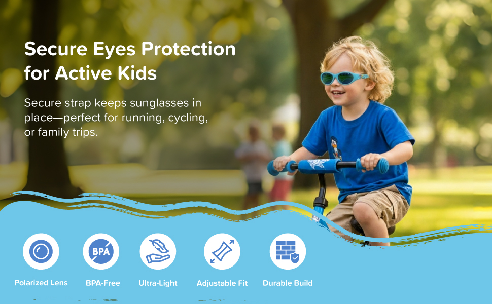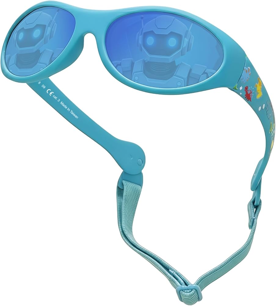 The adjustable strap keeps the sunglasses securely in place during running, climbing, or cycling, while the ergonomic fit ensures all-day comfort. A great gift for boys and girls aged 1–3 and an essential for road trips, camping, or beach days.