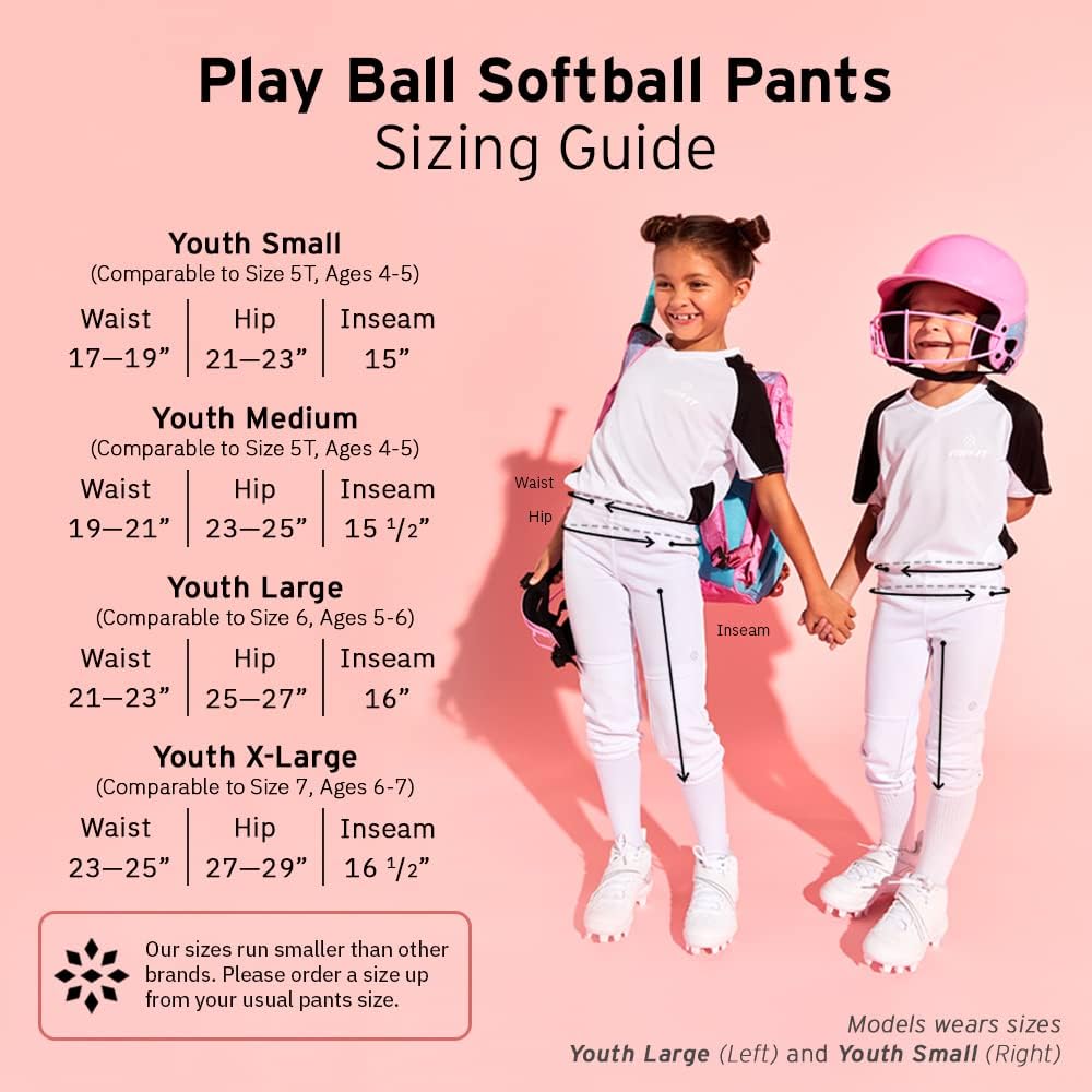 EMMA SOFTBALL PANTS: Finally, a pair of softball pants designed specifically for young girls. These pants are breathable, and durably designed with premium construction sweat-wicking material for ultimate comfort and practicability. Features an elastic waist and a drawstring providing the perfect fit.