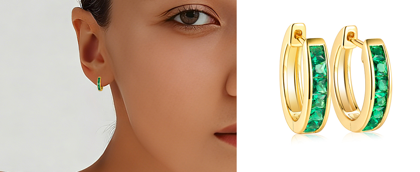 Precision Bezel-Set Round Stones Earrings: Each earring showcases a meticulously crafted 1.7mm round gemstone (5A cubic zirconia, emerald, sapphire, or ruby) secured in a robust bezel setting. This advanced technique ensures the stones stay firmly in place, eliminating the risk of falling out during daily wear.