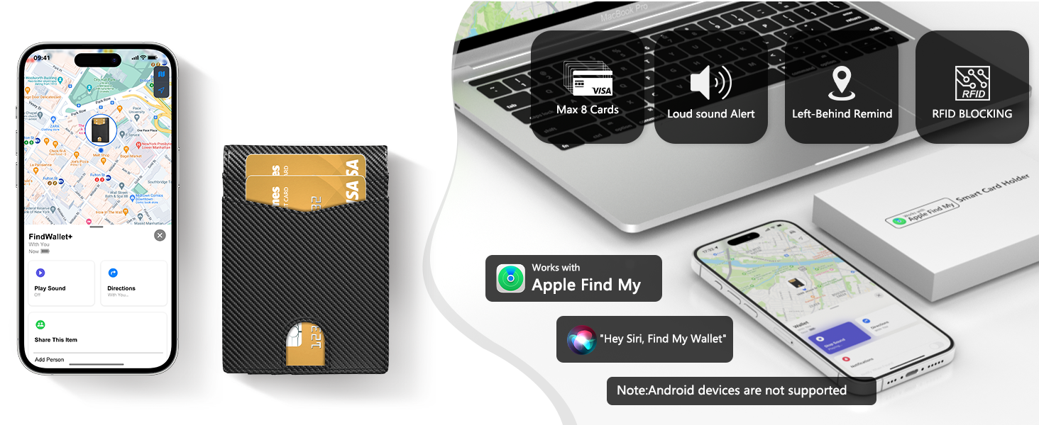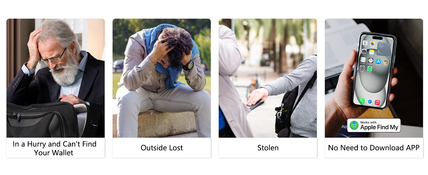 Works with Apple Find My App: The mens smart wallet, work with Apple Find My, a replacement for Airtag wallet. Track your gps wallet globally using your phone, no matter where you are. The functions are Precise Tracking, Loud sound Alert and Left-Behind Remind