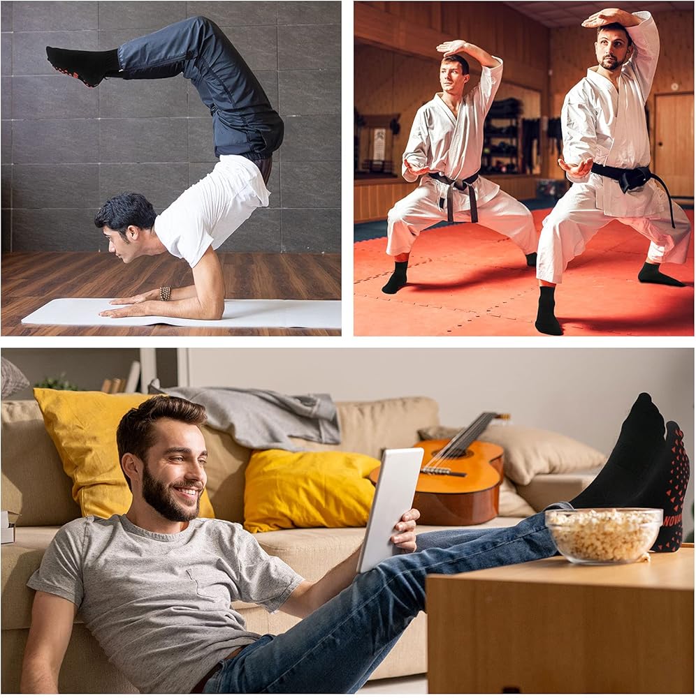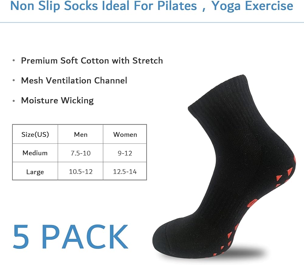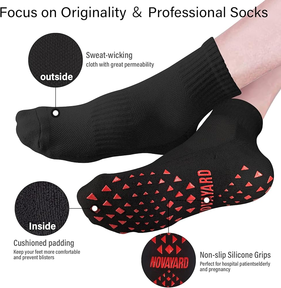✔️【Breathable mesh design】:4 pairs Non Slip Socks are made of high quality blended yarn.Durable and breathable thanks to the absorbent fabric our yoga socks wick away the moisture from your feet and dry quickly to prevent sweat build-up without hindering your mobility.