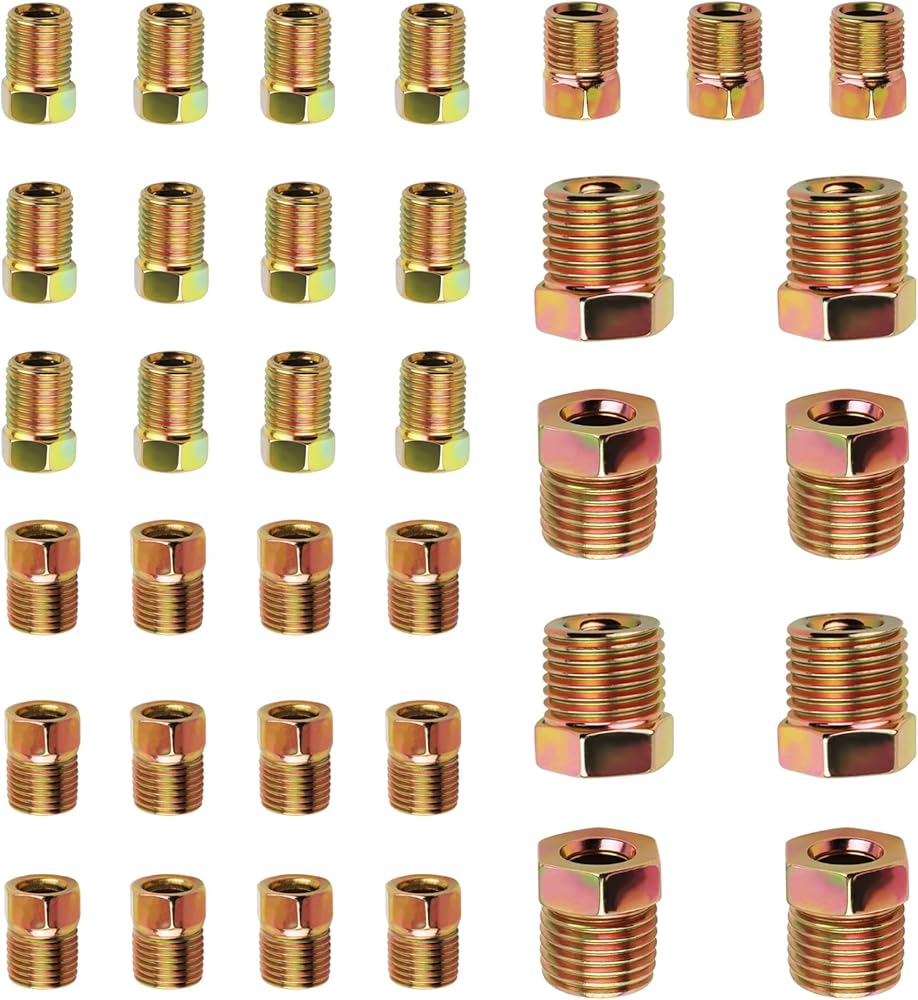 • Product Specification: You will receive 19pcs 3/16 brake line fittings, 12pcs 3/16" (3/8-24), 3pcs 3/16" (7/16-24), 2pcs 3/16" (1/2-20), 2pcs 3/16" (9/16-18), for 3/16-inch brake lines, 16pcs 1/4 brake line fittings, 12pcs 1/4" (7/16-24), 2pcs 1/4" (1/2-20), 2pcs 1/4" (9/16-18), for 1/4 inch brake lines