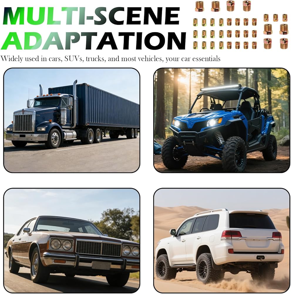 • Multi-scene Adaptation: Including 3/16 inch and 1/4 inch two common specifications, brake line fittings assortment widely used in 3/16 inch and 1/4 inch brake lines, steel lines, brass lines and other inverted flare repair work, widely used in cars, SUVs, trucks, and most vehicles, your car essentials