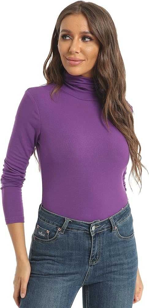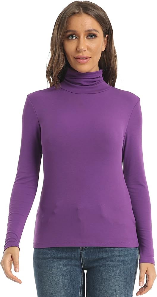 Women's Casual Long Sleeve Turtleneck Tops Slim Fitted Lightweight Base Layer Shirts