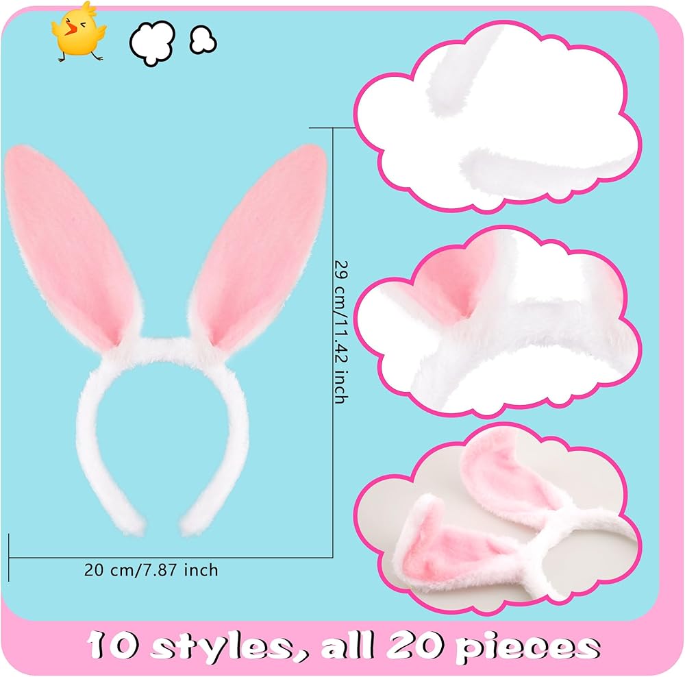 【Package Includes】: Each package include 20 packs Colorful rabbit ear heaband, bright color and pure white form a strong contrast, bring visual impact to others and make you more charming. The quantity is enough to meet your holiday dress up needs or share with your friends.