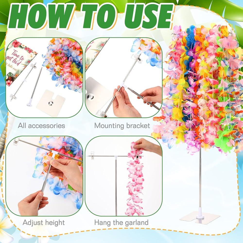 The Hawaiian Leis Holder Stand is designed for easy assembly and compact storage. Its retractable feature ensures you can conveniently pack away and store the components without taking up too much space, making it the suitable reusable solution for all your tropical-themed parties.