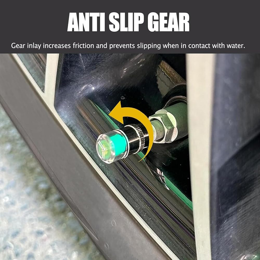 Installation: Remove the original valve cap, screw the monitoring cap clockwise onto the tire valve until tight, ensuring a secure fit. Pressure Reading: Check the color of the eye indicator: