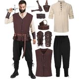 Super Value Medieval Costume Set: medieval archer costume set includes 1 pirate shirt, 1 Viking pants, 1 medieval vest, 1 brown scabbard, 1 leather belt, 1 pair of leather arm guards, 1 belt bag, and 1 vintage wristband. Rich in accessories, it is the perfect choice for your Halloween costumes and Renaissance festival costumes