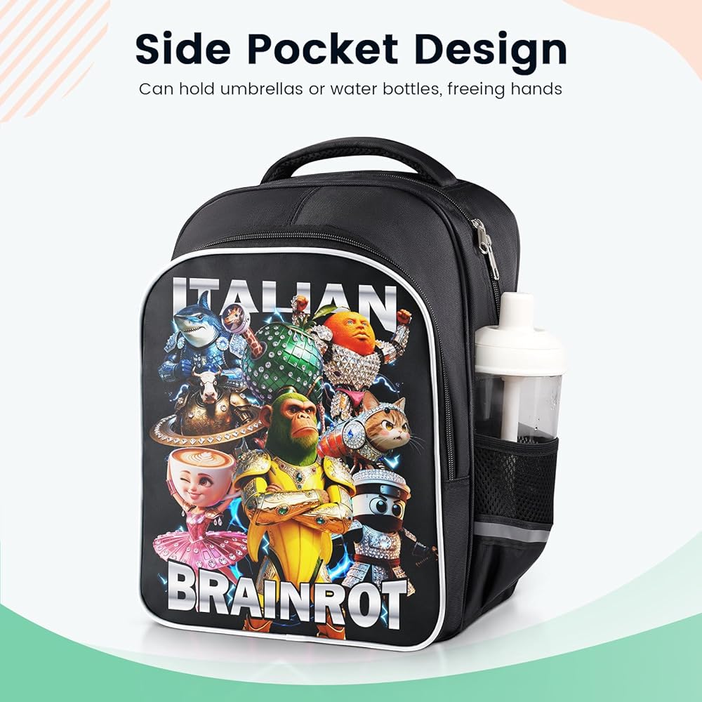 【Premium Oxford Fabric – Durable & Waterproof】Crafted from high-quality Oxford fabric, this Italian Brainrot Backpack is built to last. The water-resistant material protects your belongings from rain and spills, making it perfect for daily commutes, travel, or outdoor adventures.