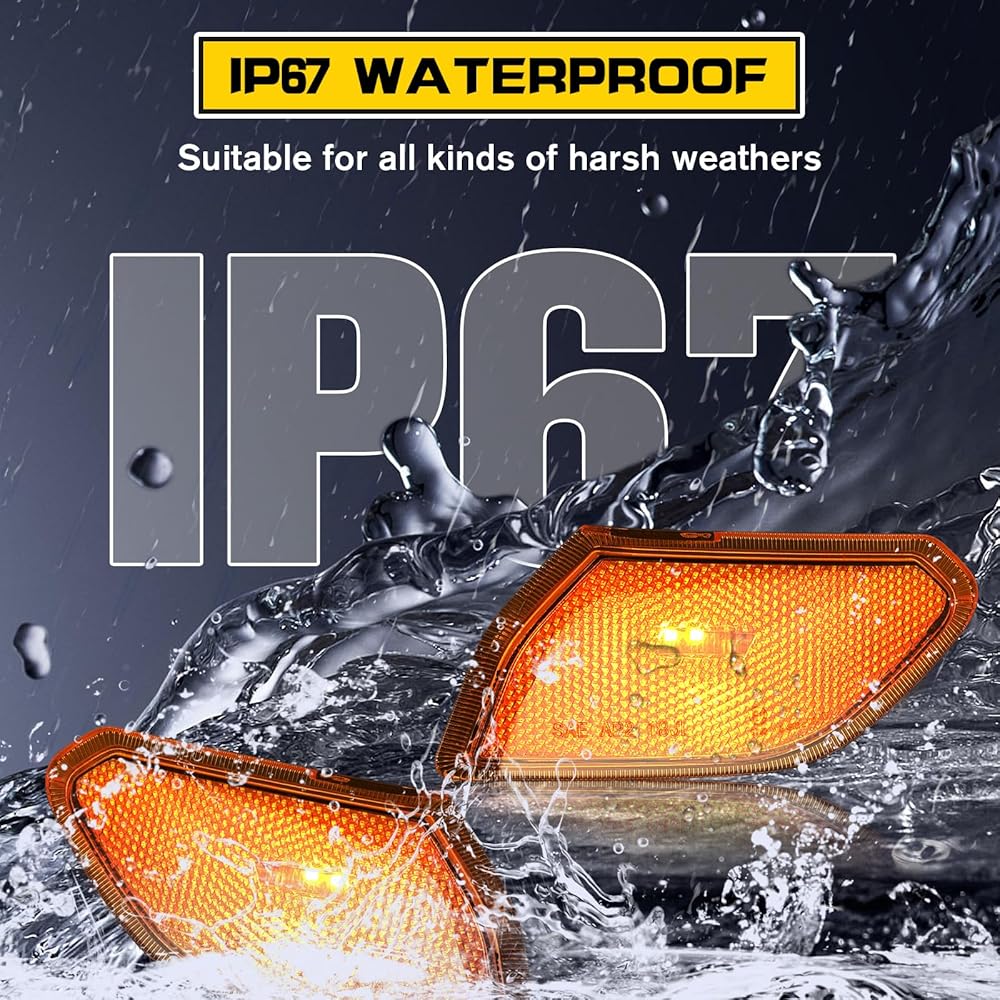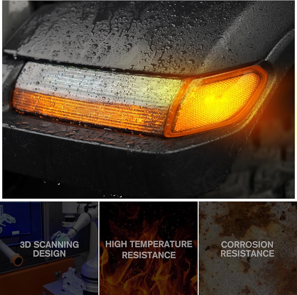 Certified Performance & Protection: DOT/SAE compliant LED lighting delivers instant, brilliant illumination. With complete IP67 waterproof rating, the LED corner lights are fully protected against dust, moisture, and water immersion, guaranteeing reliable performance in all weather and off-road conditions.