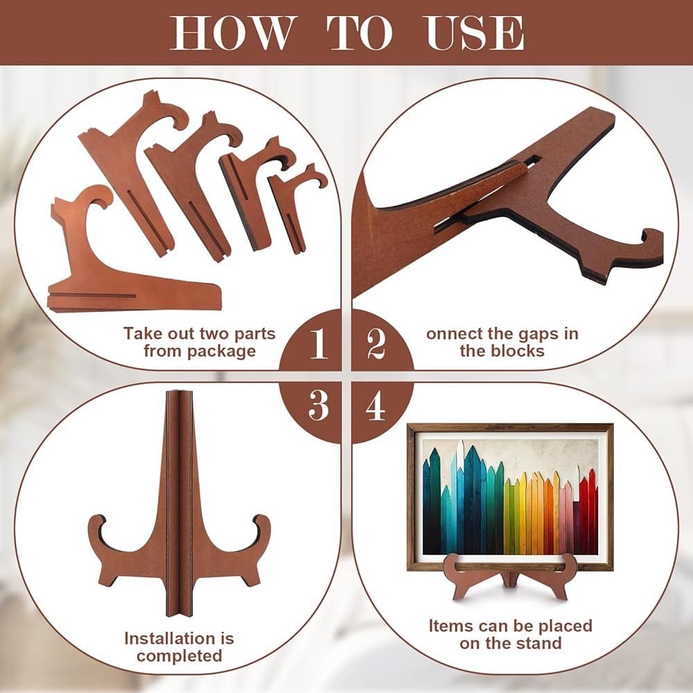 The brown wooden display easel wooden display is made of excellent crafted wood, Each wooden panel has a thickness of 4mm, and when two panels are combined, the structure is sturdy, stable, and durable.