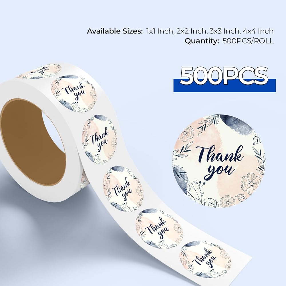 StickerJet Thank You Stickers Roll – 2"x2" Round Labels, 500 Stickers– Easy Peel & Stick, Premium Paper, Made in USA – Self-Adhesive for Packaging, Envelopes, and Gifts