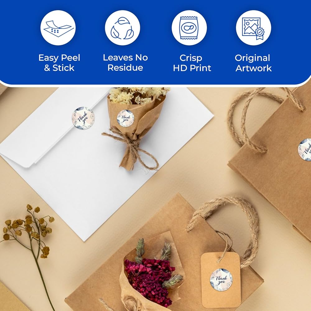 PREMIUM QUALITY STICKERS – Made from high-quality paper for a smooth finish and elegant look, perfect for adding a professional touch to your packaging.