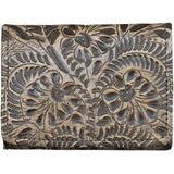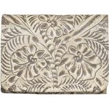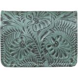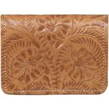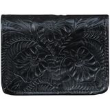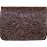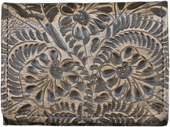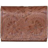 Tri-fold wallet features hand-tooled designs, an exterior zipper coin pocket, and a snap closure. Its full leather interior includes 8 credit card spaces, 1 clear ID space, 2 currency pockets, and 5 miscellaneous card sized slots. Every American West product is hand-tooled from hand-dyed 100% leather cowhide. Individual variations to make your American West product truly unique. Dimensions: 5 x 3.75"